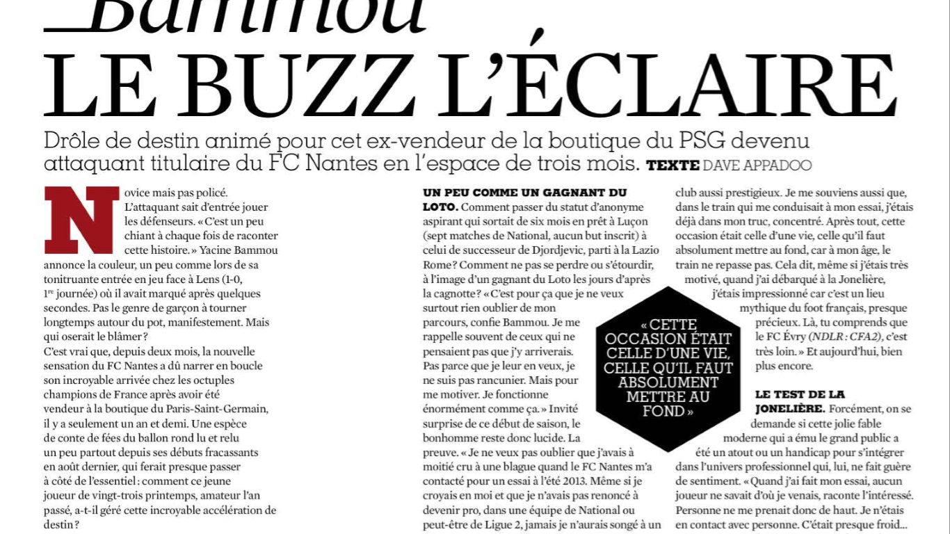 Article sur l'histoire de Yacine Bammou, l'attaquant au profil assez atypique du FC Nantes :