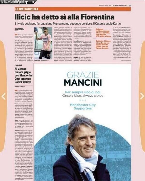 Sinon après Mancini qui s'achète une page dans un journal anglais pour remercier les supporters, la même chose, dans le sens inverse :laporte: