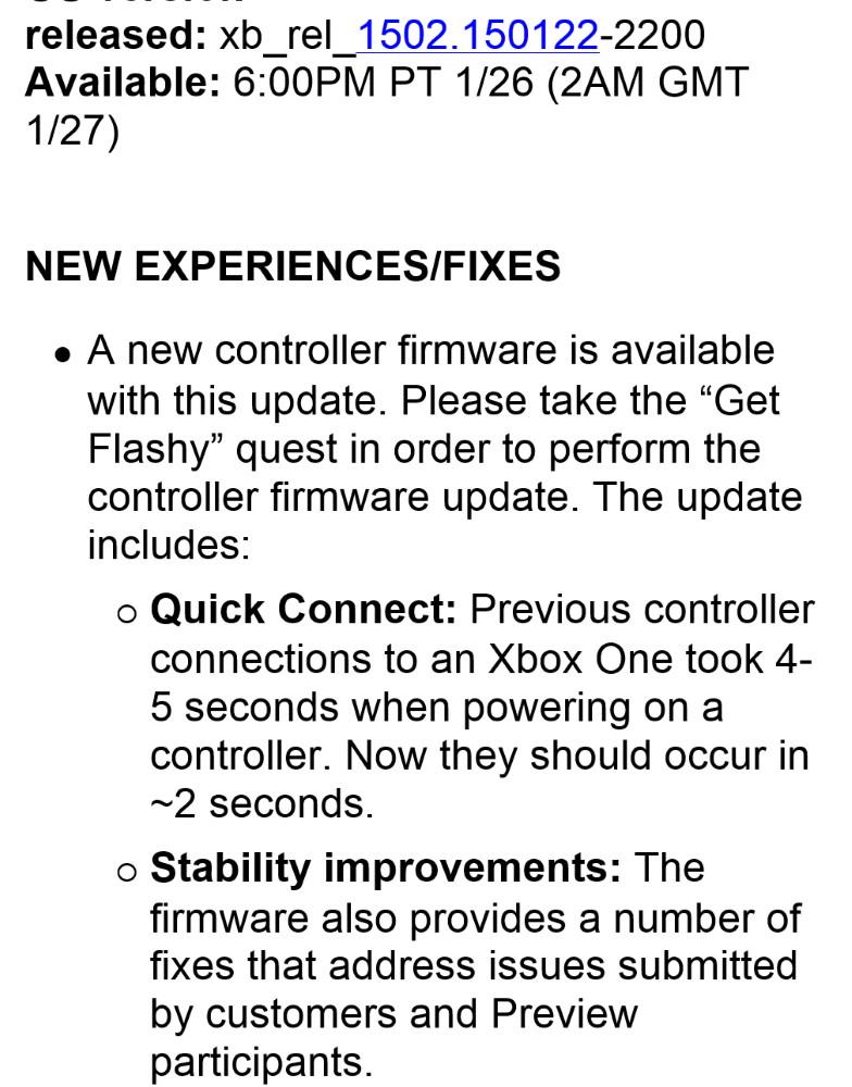 Mise à jour des manettes aujourd'hui. Connexion en 2 secondes au lieu de 4, c'est cool (surtout quand tu regardes Netflix, qu'après un épisode la manette s'est éteins et que tu veux la rallumer).